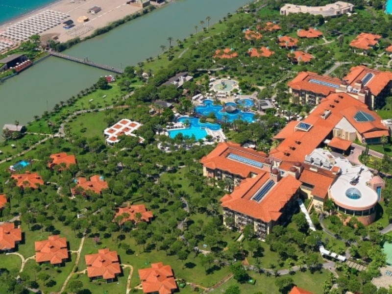Das Gloria Golf Resort, das Gloria Serenity Resort sowie das Gloria Verde Resort und die dazugehörigen Golfbahnen zählen zu den besten der Welt. Die einmalige Lage am 500 m langen Sandstrand von Belek macht das Gloria Golf Resort zu einem bevorzugten Urlaubsziel von Golfliebhabern. Es liegt nahe dem Fluss Acisu und ist über eine Brücke mit dem Strand verbunden. Zum Resort-Komplex zählen auch die hauseigenen Golfplätze: der "Old" Championship Golfplatz (18-Loch), der Verde Golfplatz mit 9 Loch als auch der "New" Championshipplatz mit 18 Löchern. Diese herausragende Auswahl an Plätzen ermöglicht jedem Golfer einen attraktiven Golfurlaub. Müde Arme und Beine kommen am besten im "La Source" Spa & Wellness Center wieder in Schwung, wo Sie aus den vielfältigsten Behandlungen die passende wählen können. Die Anlage ist im traditionellen Stil erbaut und besteht aus einem 4-stöckigen Hauptgebäude und mehreren Villen in einer traumhaft gestalteten Gartenanlage. Insgesamt gibt es 515 Zimmer, davon über 200 luxuriöse Suiten und Villen. Sie haben außerdem die Wahl aus einem vielfältigen Sportangebot, als auch aus erholsamen Behandlungen im eigenen Spa & Wellness Center. Das "La Source" Spa & Wellness Center verfügt über die neuesten Technologien und bietet in 15 Räumen diverse Massagen und Behandlungen für Ihr wohlbefinden an. Es gibt 2 verschiedene Saunen, 1 Dampfbad mit Aromen, ein türkisches Bad, Hallenbad und Fitnessstudio und vielen Annehmlichkeiten mehr. Hier können Sie sich rundum Wohlfühlen und sich nach Ihrem herausfordernden Golfspiel total entspannen!